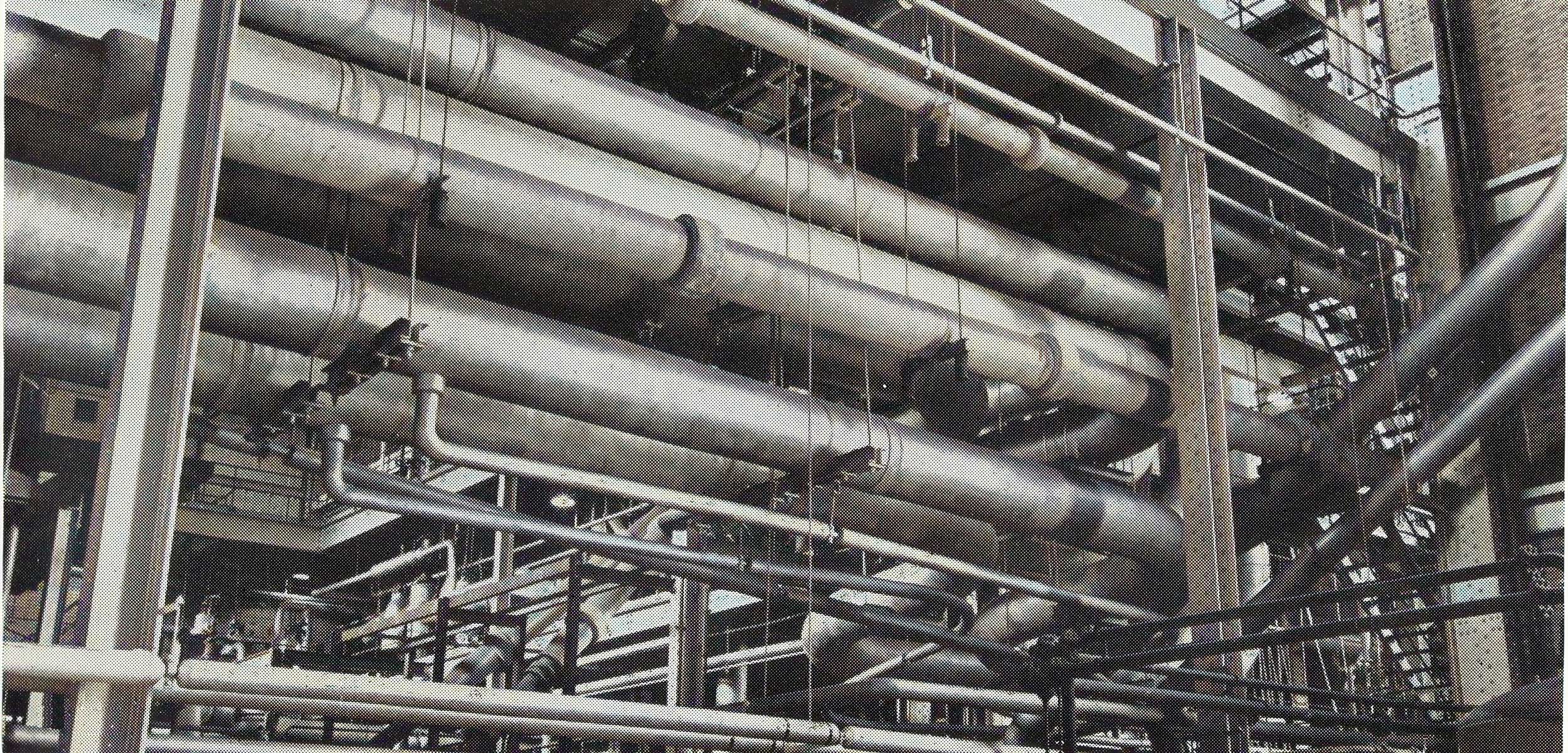 Nos 6,7 & 8 Boilers were manufactured by Foster Wheeler. They were front wall fired with PF supplied by two of three Double Ended Tube Ball Suction Mills. Only two mills were required for full load.