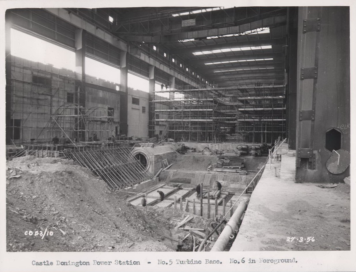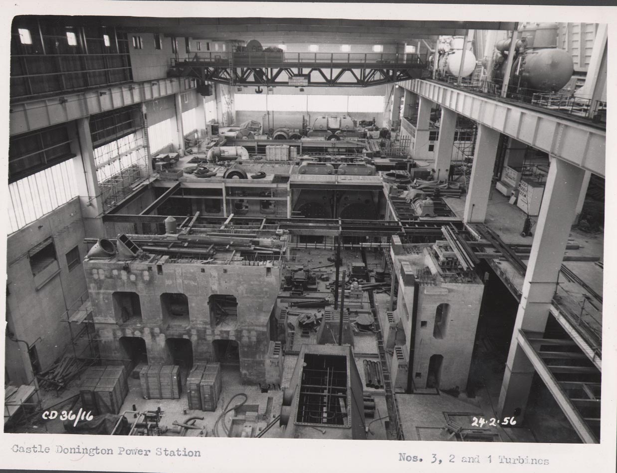 The Ministry of Power approved the construction of Castle Donington in 1951 and work began almost immediately. The first unit started generating in 1956 and was officially opened in October 1957.  Unit 6 the final generator was completed and started generating in May 1959. All these images have been supplied with thanks to Norris Pickford.